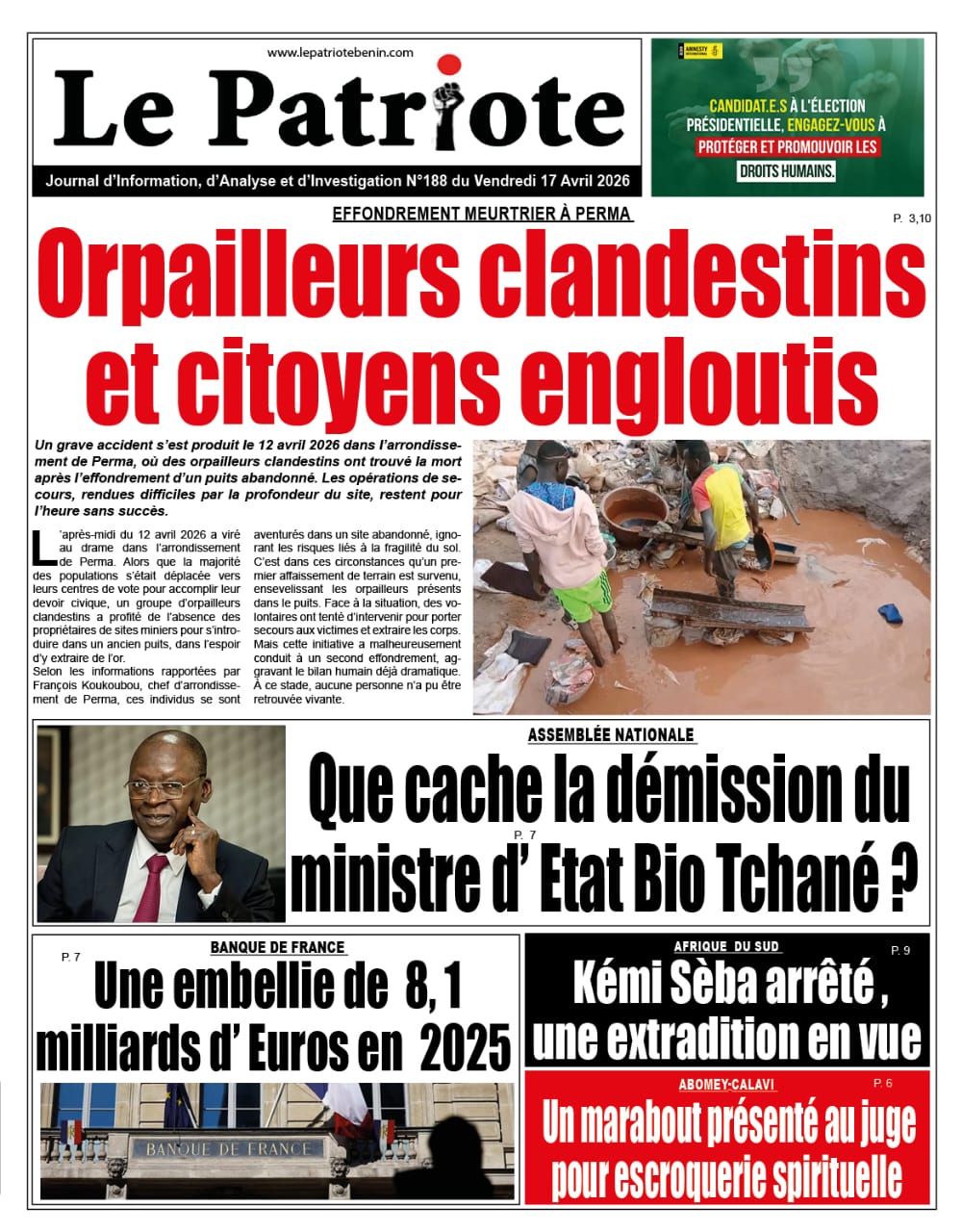 Le Patriote est un journal indépendant béninois d’informations et d’investigations créé par un collège de journalistes rompus au professionnalisme et décidés à apporter leurs expériences pour l’avènement d’une presse de qualité au Bénin et dans la sous-région ouest-africaine. Pendant plusieurs décennies, chacun d’eux a fait sa classe, a blanchi sous le harnais et a une compréhension large de l’écosystème médiatique. C’est cette somme d’expérience qu’ils ont décidé de mettre au service du public en créant un média qui reflète leur étique de journaliste et leur conviction d’une presse vraiment indépendante.